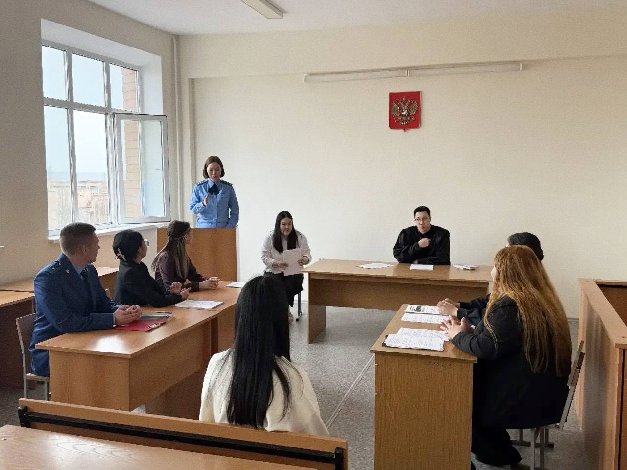 В рамках сотрудничества и плана совместных мероприятий прокуратуры Республики Калмыкия, Калмыцкого регионального отделения общероссийской общественной организации ветеранов и пенсионеров прокуратуры Республики Калмыкия и Калмыцкого государственного университета им. Б.Б. Городовикова для студентов 3-4 курсов организована и проведена деловая игра «Судебный процесс».