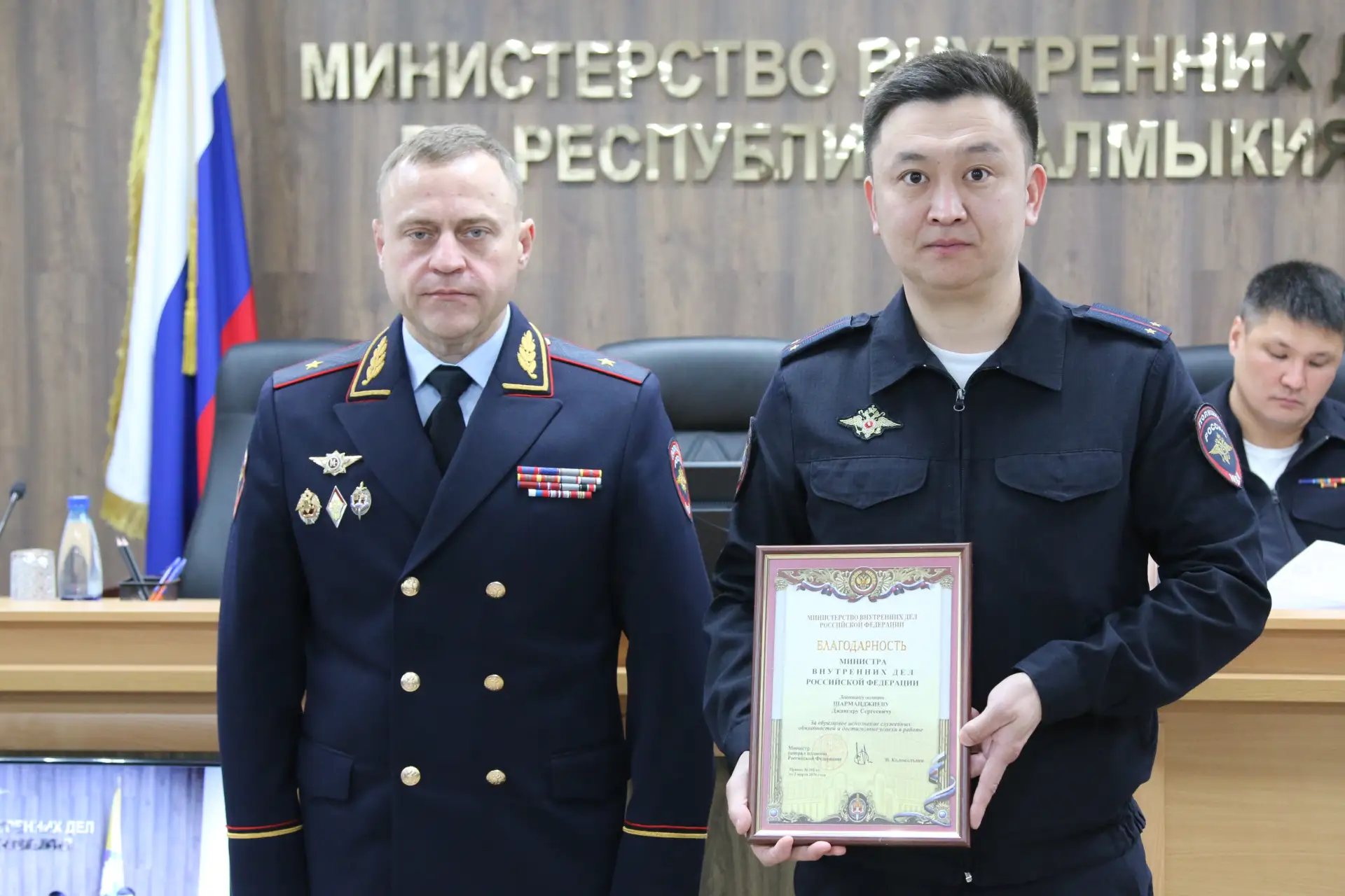 Министр внутренних дел Республики Калмыкия генерал-майор полиции Григорьев Дмитрий Юрьевич на рабочем совещании представил личному составу начальника Контрольно-ревизионного отделения МВД по Республике Калмыкия