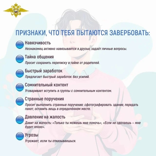 Вербовщики часто вовлекают в противоправные деяния несовершеннолетних. Будьте бдительны, обязательно обсудите с детьми основные меры безопасности и профилактики.