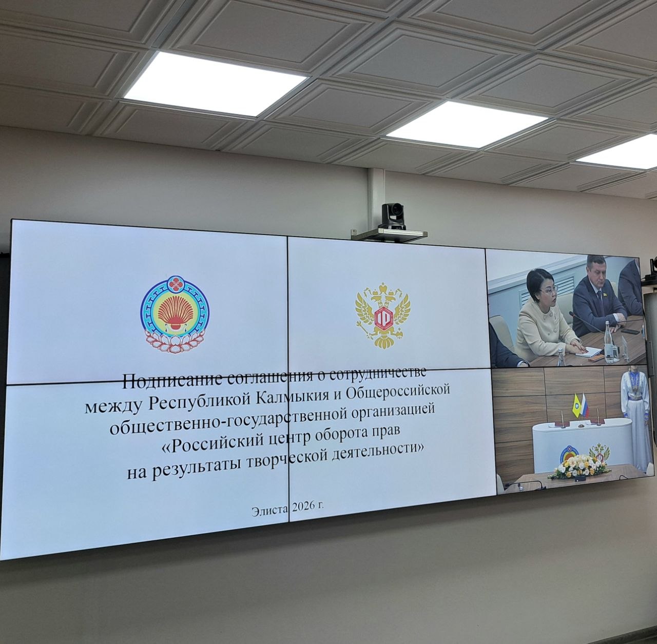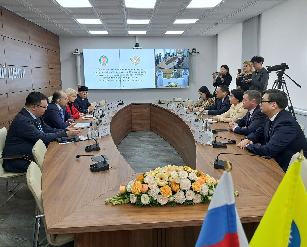 Между Республикой Калмыкия и Российским центром оборота прав на результаты творческой деятельности подписано соглашение о сотрудничестве. В торжественном мероприятии принял участие спикер Народного Хурала (Парламента) РК Артем Михайлов.