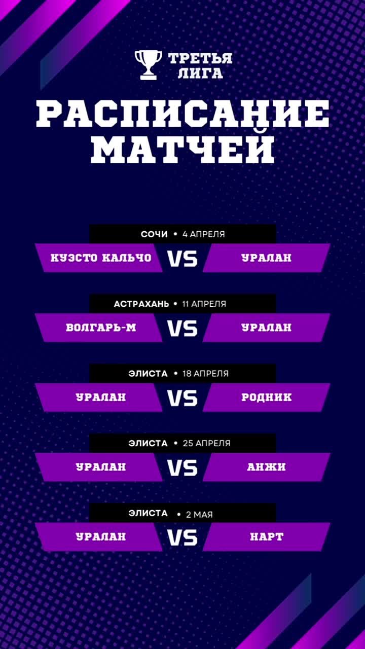 Публикуем расписание матчей.