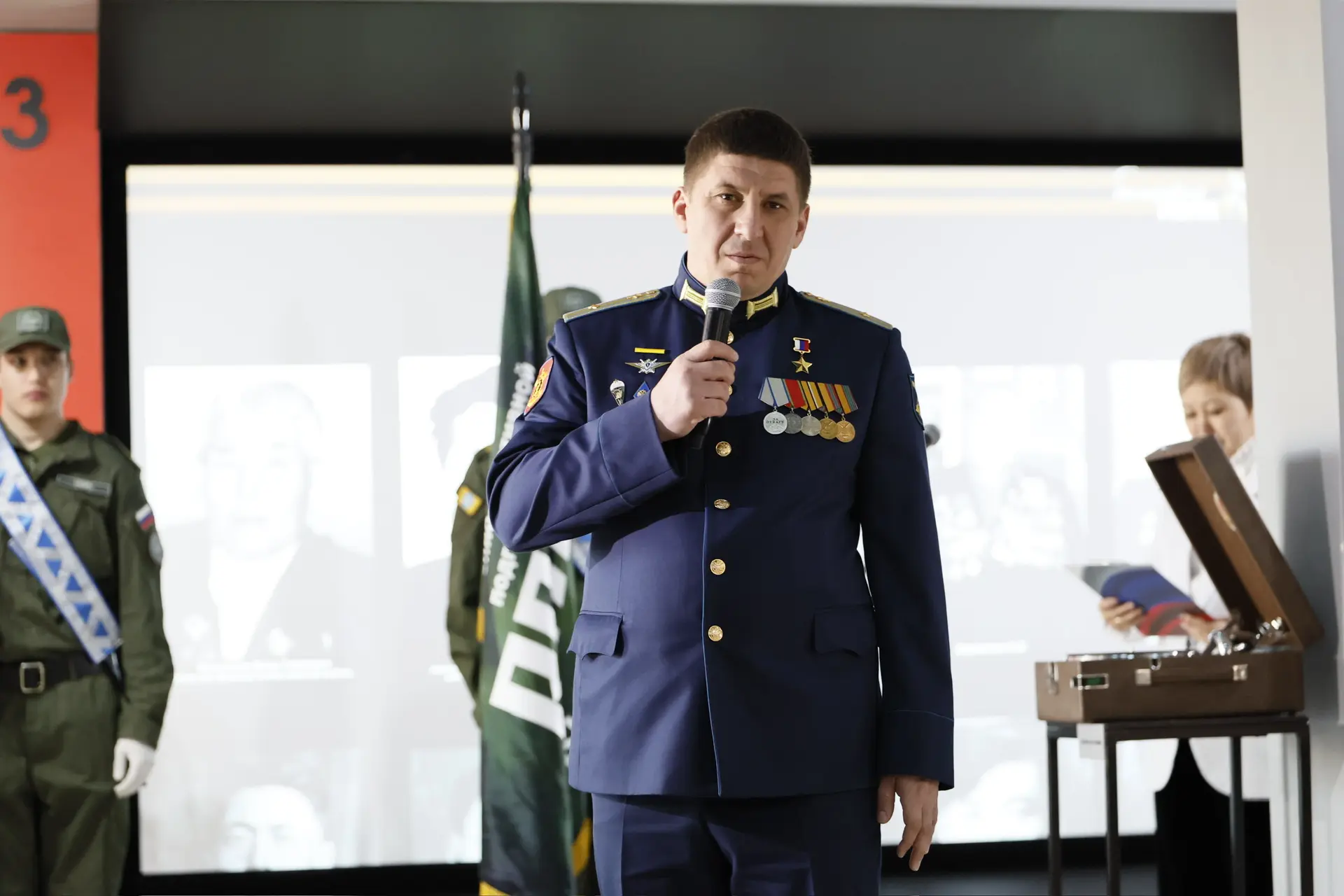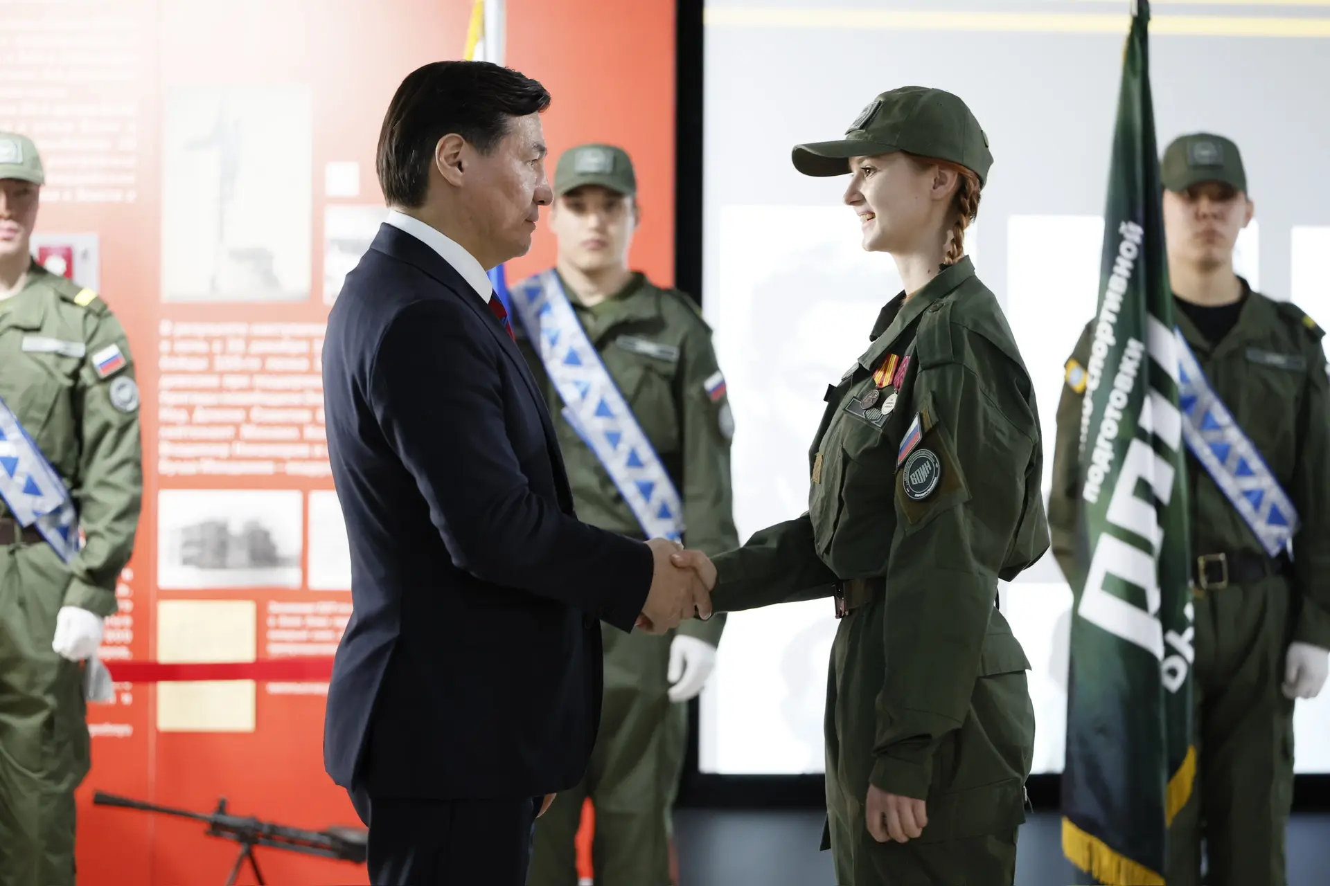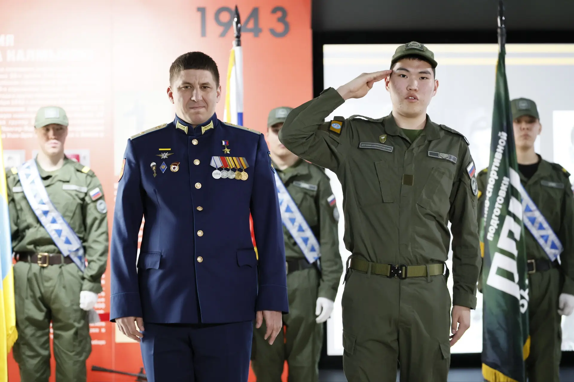 Вместе с Героем России Романом Сергеевичем Кулаковым вручили знаки отличия лучшим курсантам филиала Центра «Воин»