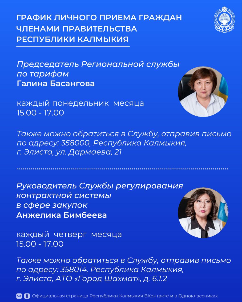 Записаться на личный приём членами Правительства РК можно в рабочие дни с 9.00 до 13.00, с 14.00 до 18.00 по следующим номерам и электронным адресам: