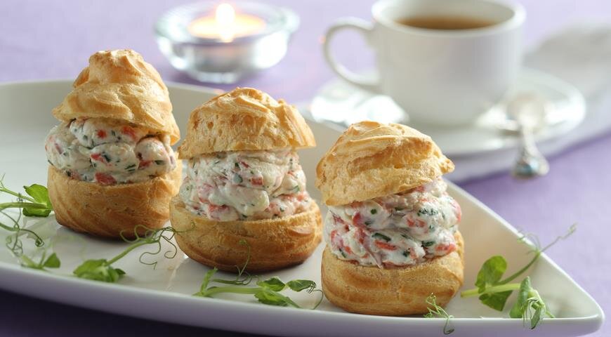 Профитроли – это изысканные, полые лакомства из заварного теста, которые могут быть начинены как сладкими, так и несладкими наполнителями. Они отлично подходят для подачи в качестве закуски на фуршетах и праздниках, особенно с пикантными начинками, такими как этот вариант с неркой.