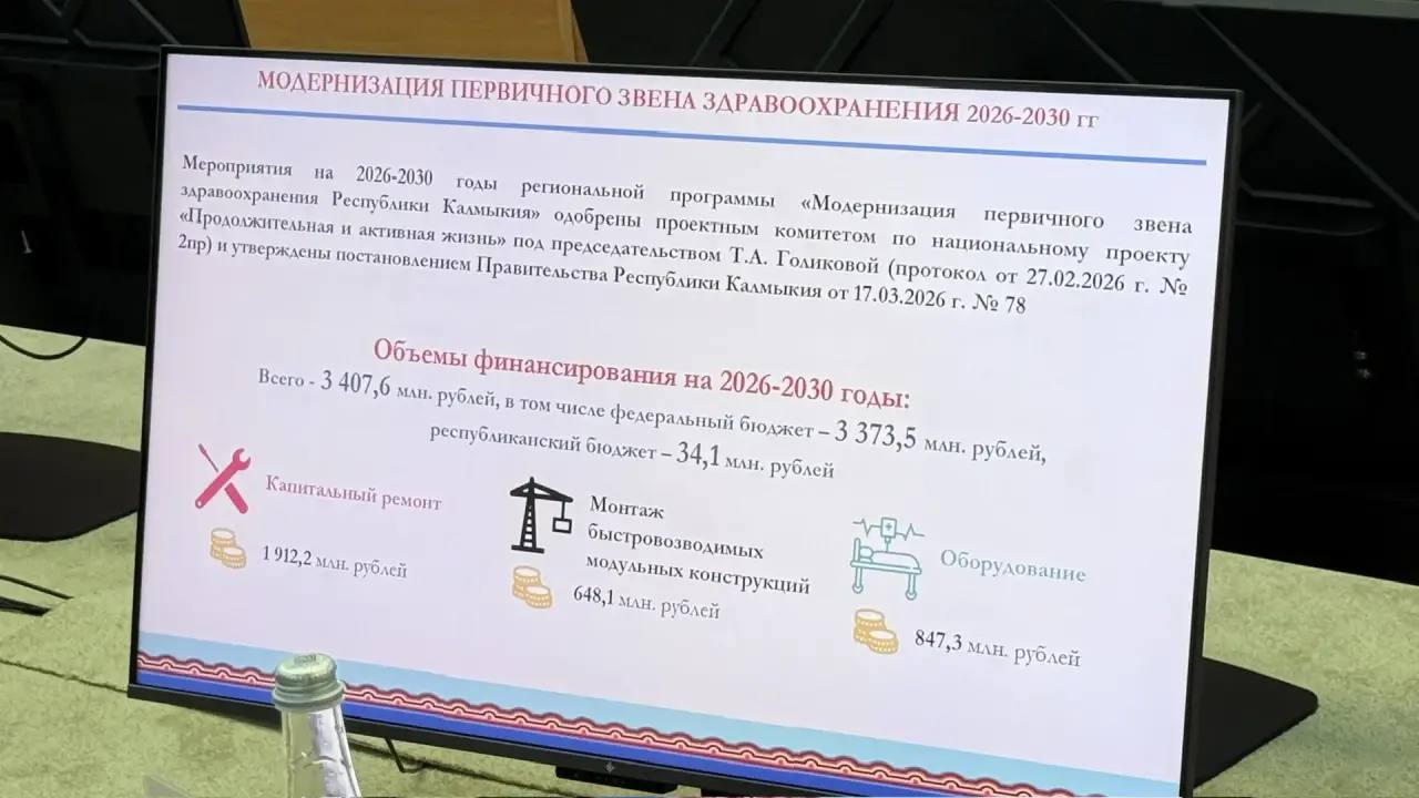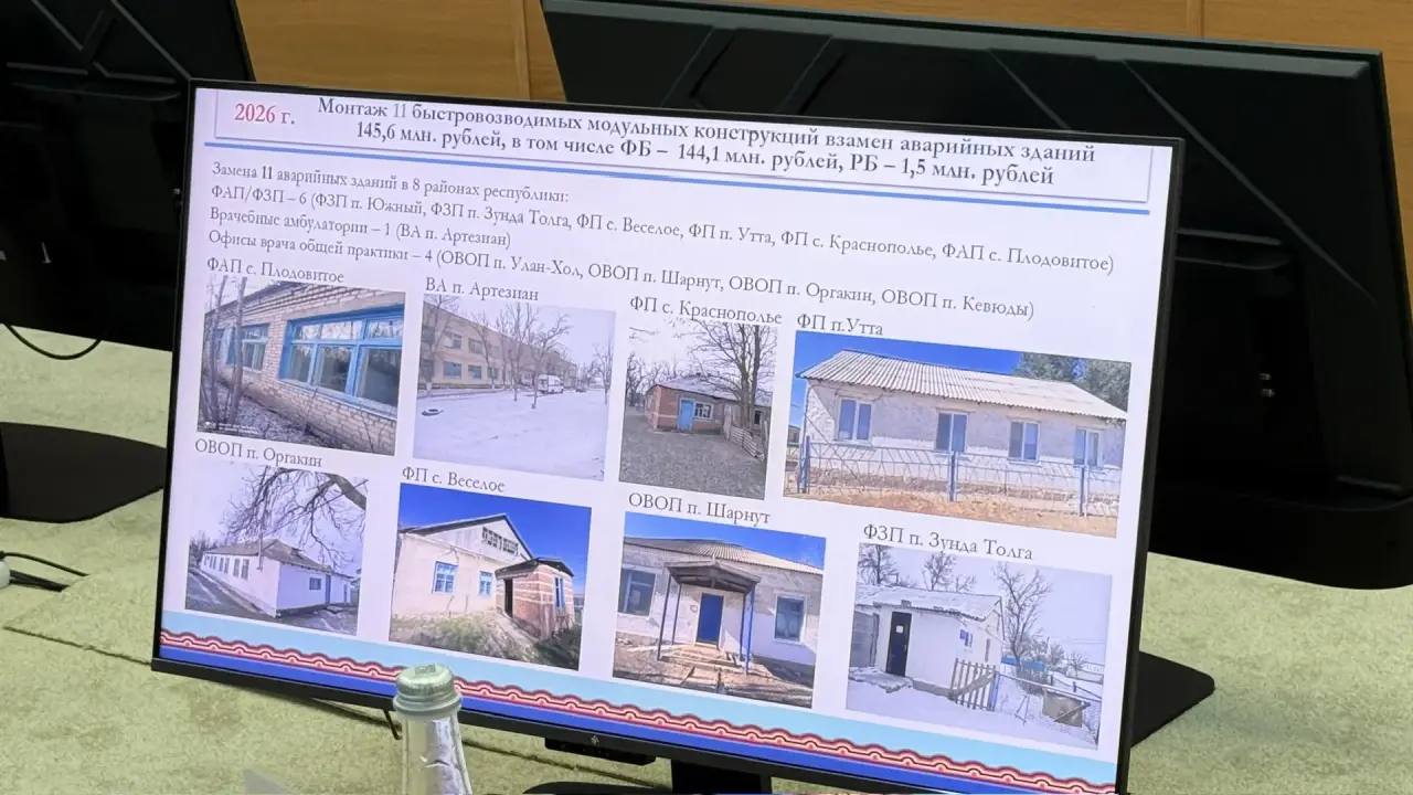 В 2026 году работы начнутся сразу на нескольких ключевых объектах. В программу капремонта включены здание районной больницы Ики-Бурульской РБ, стационар Малодербетовской РБ, а также основной корпус Городской поликлиники в Элисте. Кроме того, в текущем году запланирован монтаж 11 быстровозводимых конструкций взамен аварийных зданий.