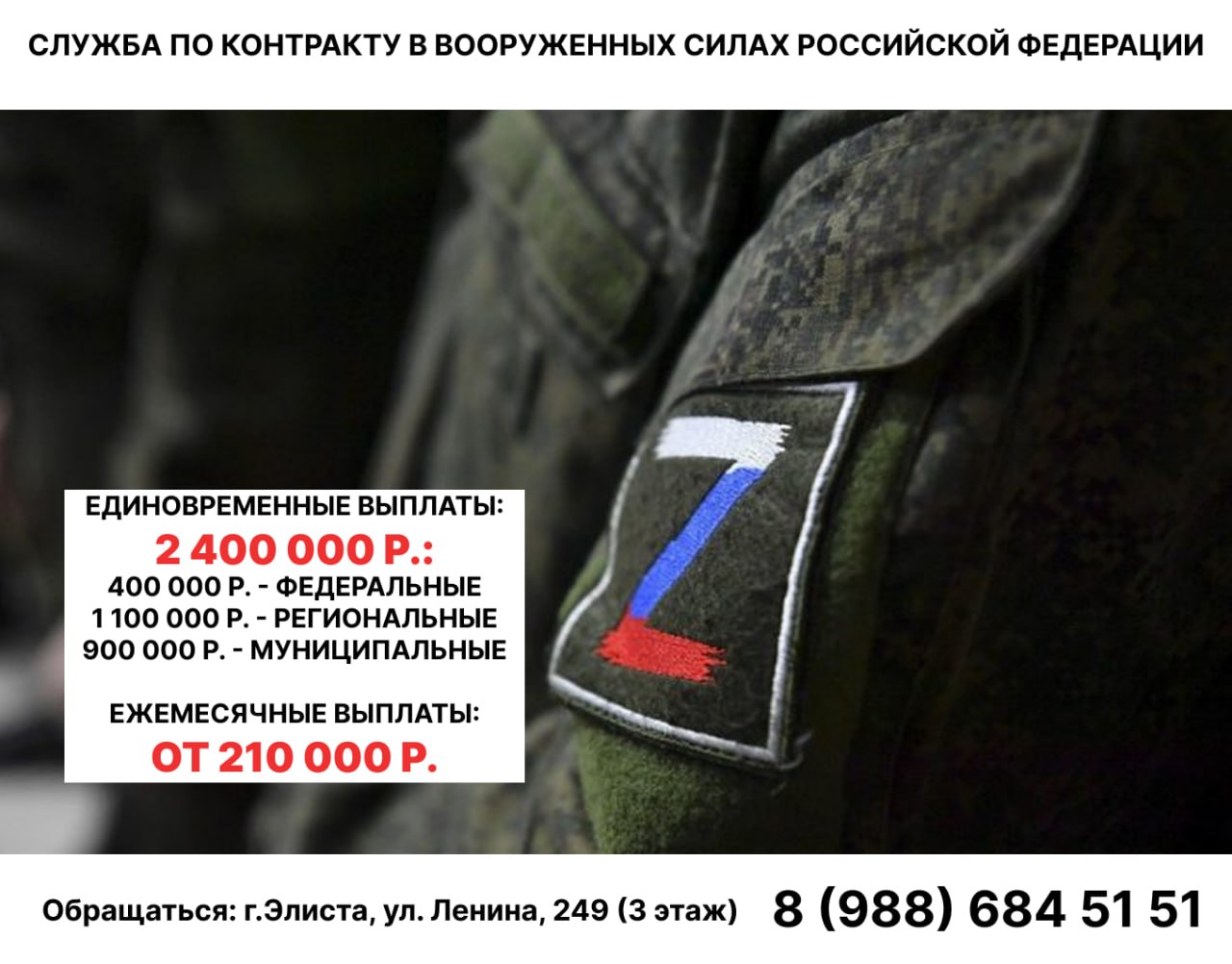 Элистинцы имеют возможность подписать контракт и участвовать в специальной военной операции. В вооружённые силы РФ могут вступить все желающие.