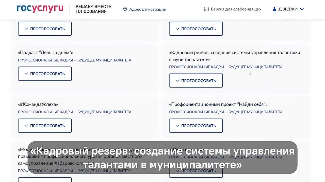 4. Проголосуйте за проект: «Кадровый резерв: создание системы