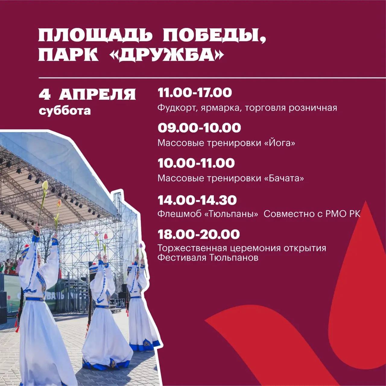 В эту субботу, 4 апреля, начинаем цикл мероприятий, посвященных уже ставшему традицией празднованию Фестиваля тюльпанов.
