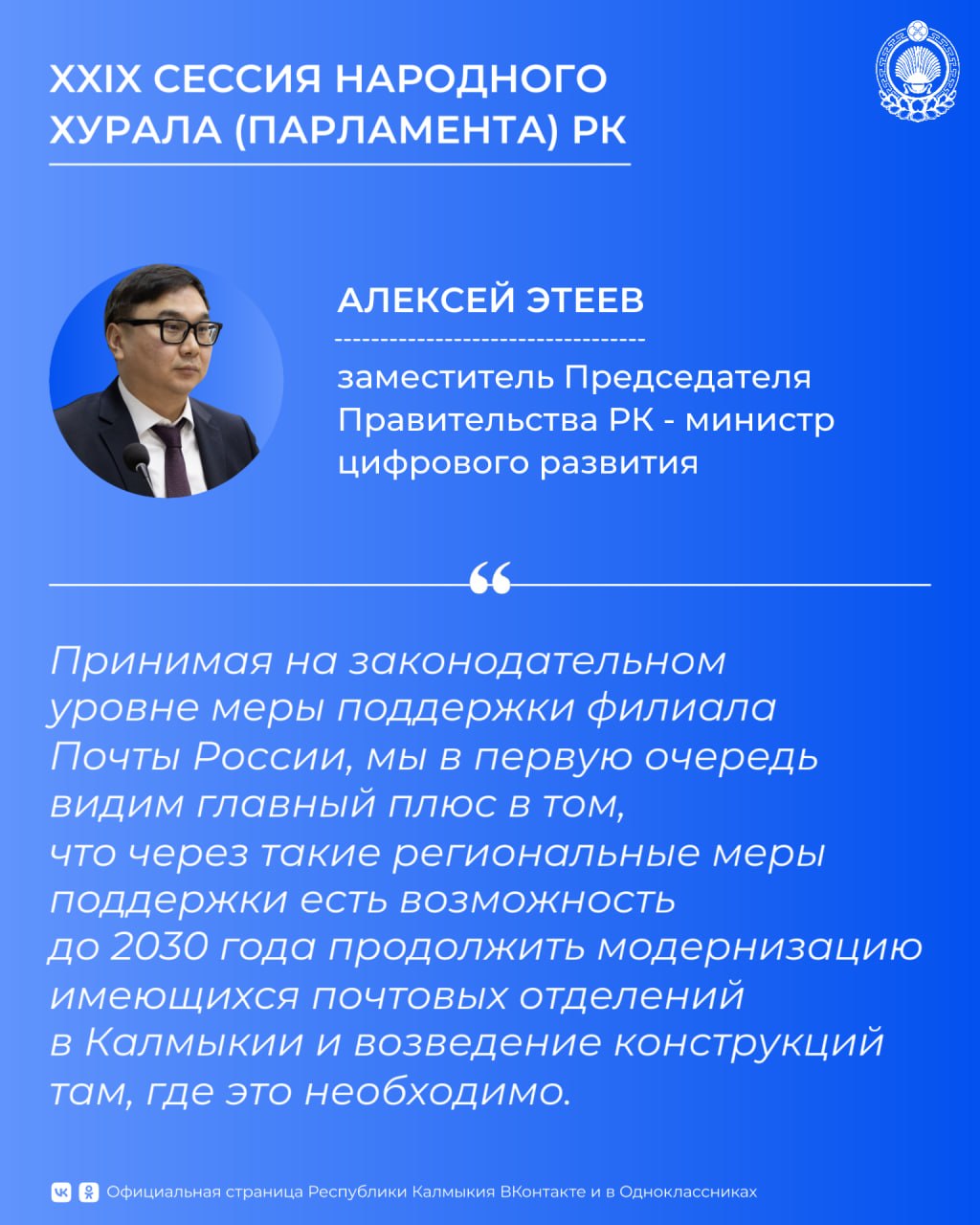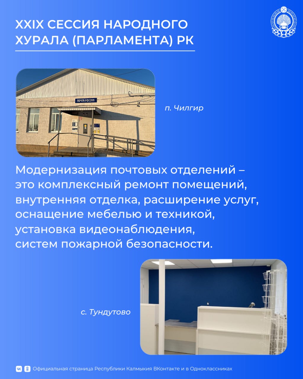 Принятый закон предполагает региональную поддержку калмыцкого филиала Почты России в виде налоговых льгот на пять периодов – с 1 января 2026 года по 31 декабря 2030 года.