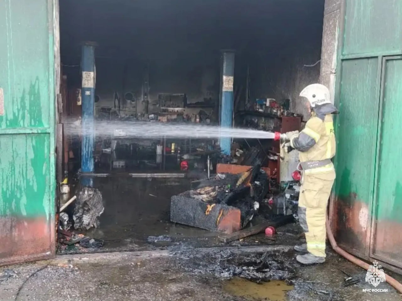 В Городовиковске потушили пожар в гараже.