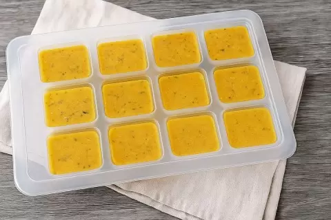 Овощи измельчаются в блендере, разливаются по формочкам и отправляются в морозильник.