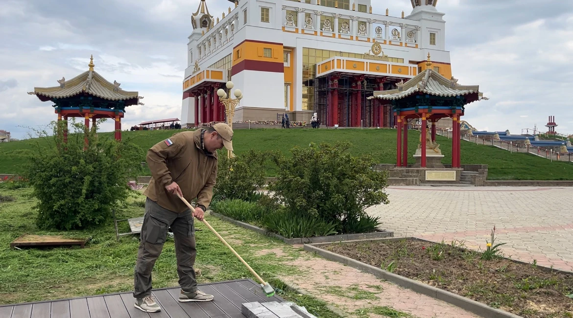 И в ней приняли участие сотрудники аппарата #ЭГС, #КСКЭлисты и депутаты Собрания. Вместе с другими активистами трудились на территории Хурула, делая это знаковое место еще более ухоженным.