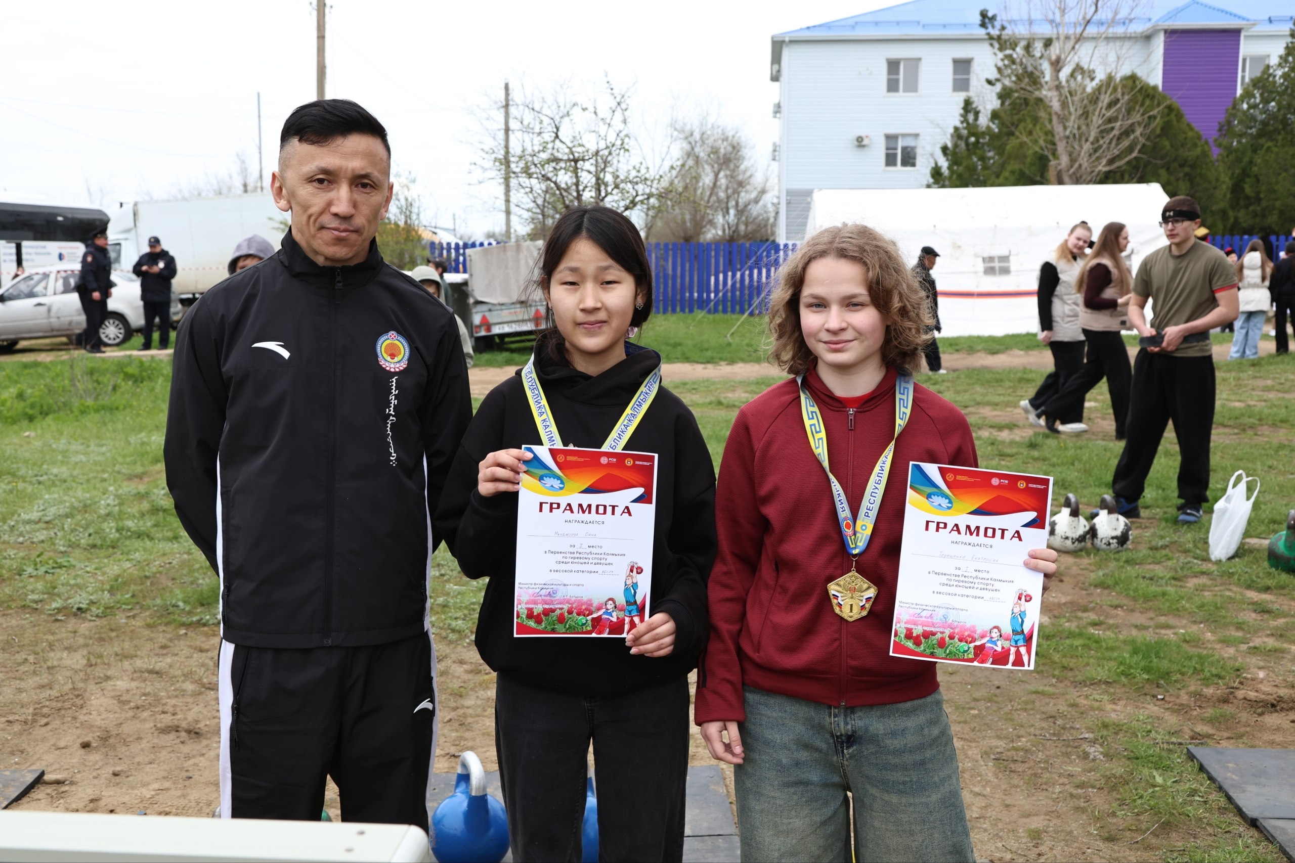 В селе Троицкое Целинного района в рамках Фестиваля тюльпанов 2026 прошли чемпионат и первенство Республики Калмыкия по гиревому спорту.